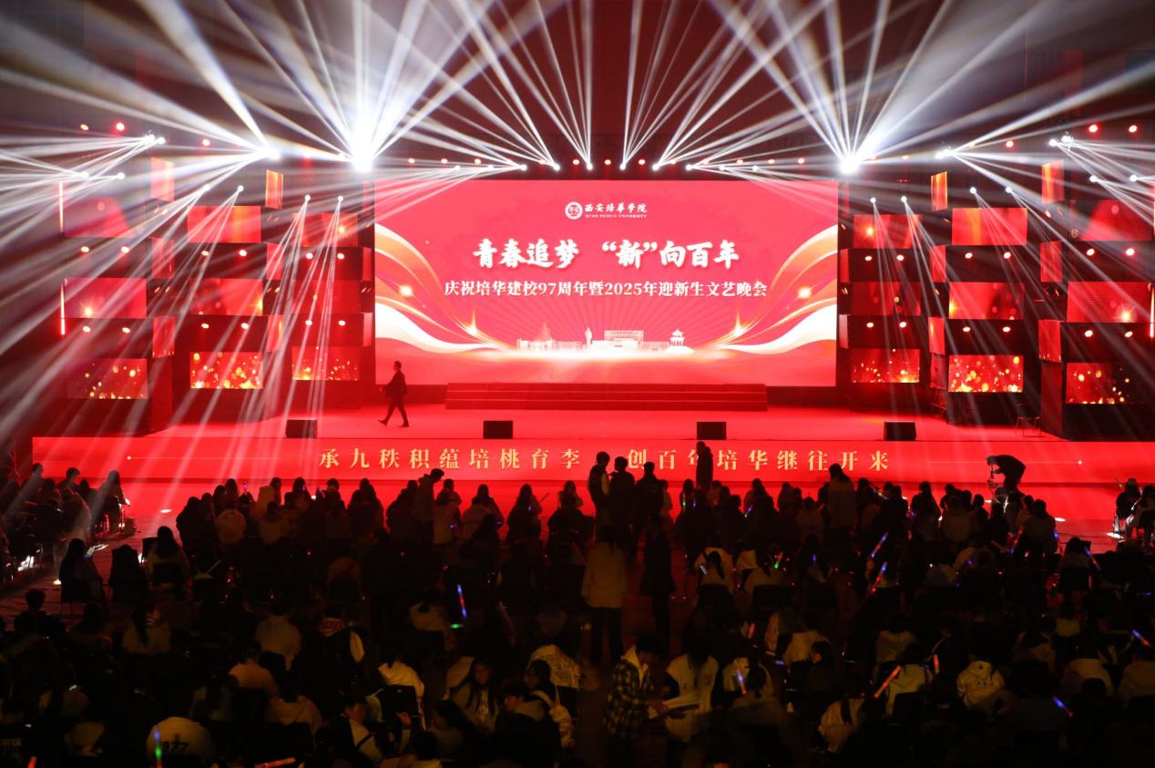 时光长河,在此泛起青春的涟漪,星辰大海,在此照亮梦想的启航。10月23日晚,西安培华学院建校97周年暨2025年迎新生文艺晚会在五棵松体育馆举行。西安培华学院理事长姜波、党委书记刘锋、副校长姚文静、国际校长李华,各二级学院师生代表出席。本次晚会由传媒与设计学院播音与主持艺术专业教师巨梦、网络与新媒体专业教师陈肖雄、以及播音与主持艺术专业学子付羽洁、王子帆主持。
