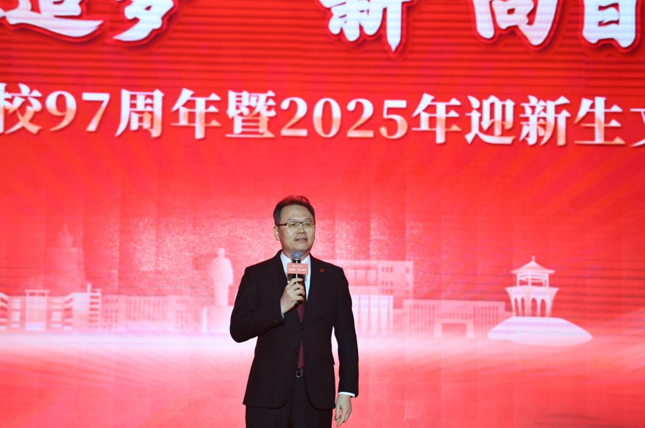 姜波理事长致辞表示,培华走过97年的风雨历程,其发展壮大正源于其“顽强坚韧、开拓创新”的精神。他寄语2025级全体新生,要珍惜大学时光,努力成长,以优异成绩回报母校,在培华迈向百年的征程中,留下属于新一代人的奋斗印记。
