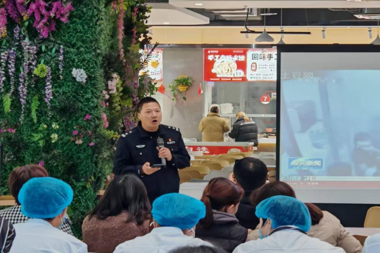 活动开始前,杜曲派出所民警首先为在校师生、工勤人员、安保人员等讲解了消防安全的基本知识,包括日常发生火灾的起因、发展过程以及预防措施等,针对校园内常见的火灾隐患,如餐厅、宿舍内违规使用电器及教学楼消防通道堵塞等问题,进行风险分析和防范宣讲,使参训人员深刻认识到消防安全的重要性。