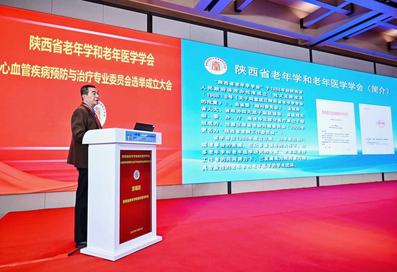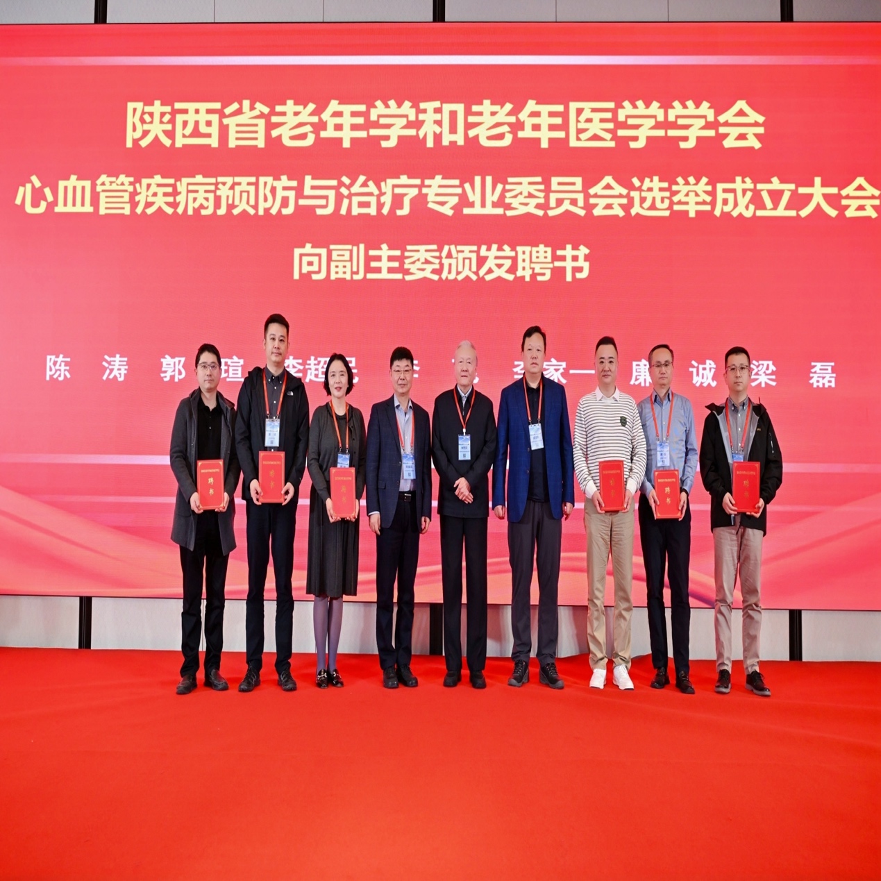 陕西省老年学和老年医学学会米烈汉会长,常务副会长兼秘书长宜福田,学会副会长杨文彬,西安交通大学第二附属医院心血管病院院长郑强荪教授、邓捷教授等专家学者出席会议。米烈汉会长在致辞中对专委会的成立给予高度评价,指出这是学会完善学科体系建设、精准服务健康老龄化国家战略的关键举措。他强调,专委会未来应着力于“防、治、管、促”四个方面:一是加强前沿医学研究,提升诊疗水平;二是推动中西医结合在老年心血管领域的协同应用;三是促进优质医疗资源下沉,提升基层防治能力;四是开展广泛深入的全民健康教育。西安交通大学第二附属医院心血管病院院长郑强荪教授表示,专委会的成立“恰逢其时,意义深远”,不仅完善了学会学科体系,也与“一带一路”论坛“交流互鉴、共同发展”的宗旨高度契合,将有力推动区域内心血管防治资源的整合与协同发展。新当选的主任委员邓捷教授表示,深感使命在肩、责任重大。下一步,专委会将重点推进以下工作:强化学术引领,推动学科发展;重视会员服务,保障会员权益;加强组织建设,注重人才培养;坚持公正透明,勇于担当创新。