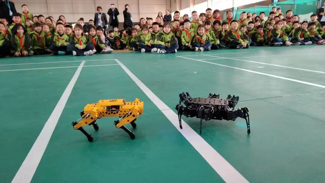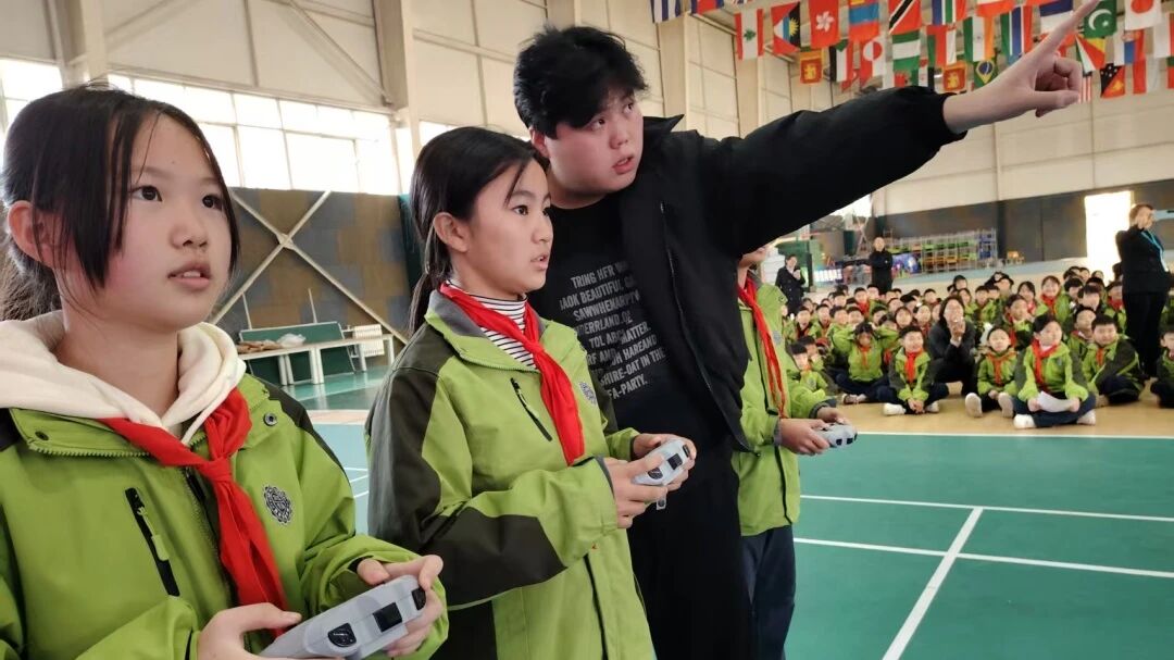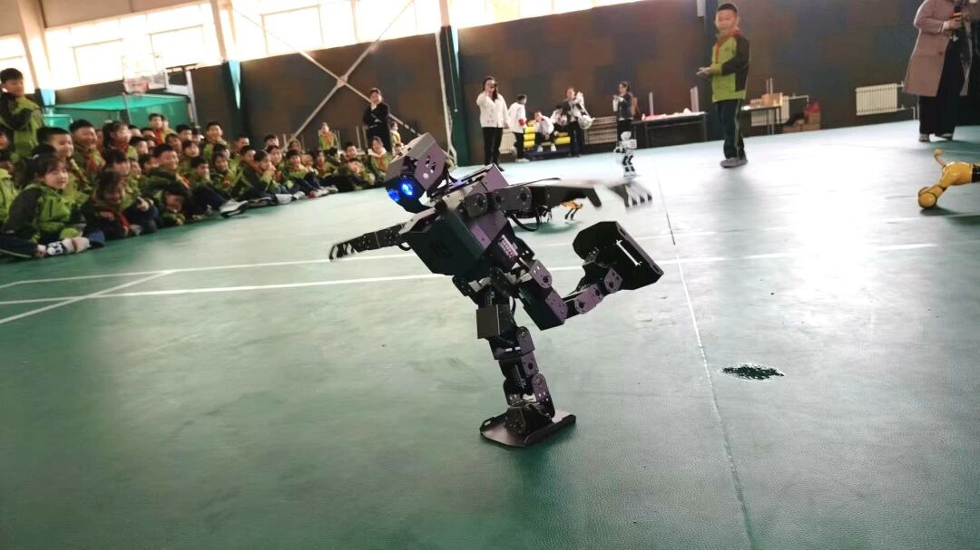 随后的科技展示环节,成为一场创意与智慧交融的视觉盛宴。同学们用小小积木构建出精密的太空站与宏伟的未来城市,展现了丰富的想象力与卓越的动手能力;无人机化身“空中足球”,在空中灵活穿梭、精准拦截,引发阵阵欢呼,互动环节更让学生们亲身体验了操控的乐趣;机器人跟随着音乐节奏翩翩起舞,动作整齐划一,并与同学们进行智能对话,生动展现了人工智能的奇妙。