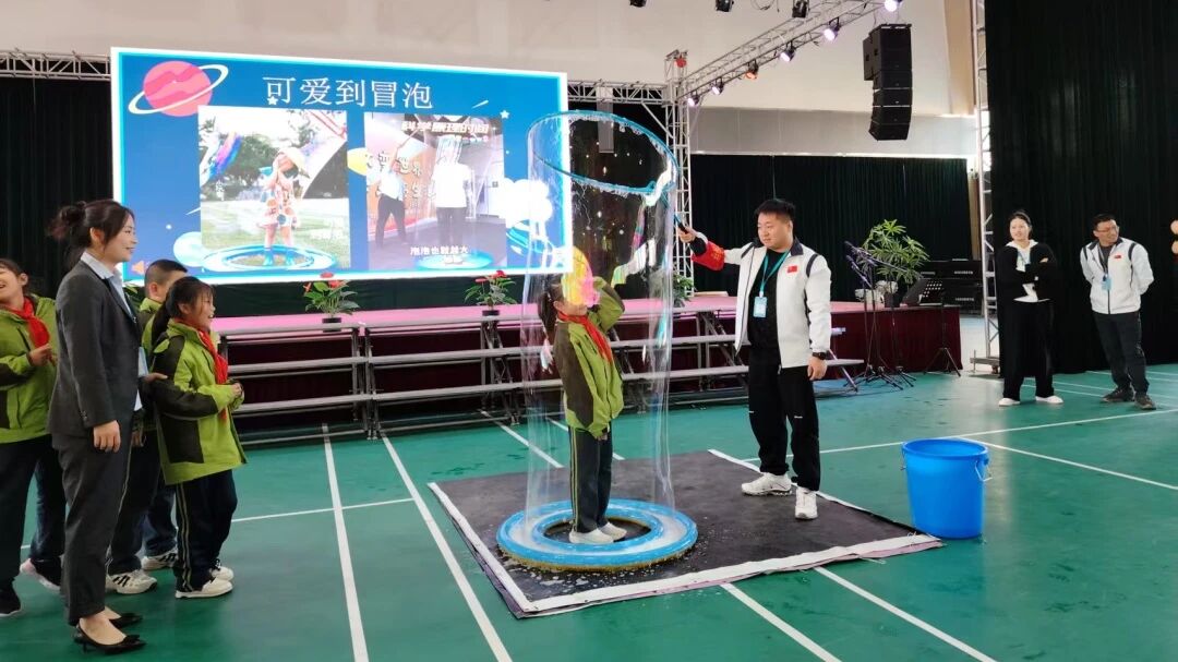 科学体验区同样气氛热烈。低年级学生沉浸在“可爱到冒泡”的梦幻泡泡中,直观感受表面张力的神奇;高年级学生则亲身体验了经典的“马德堡半球”实验,在大气压力的震撼景象中深化了对科学原理的理解。