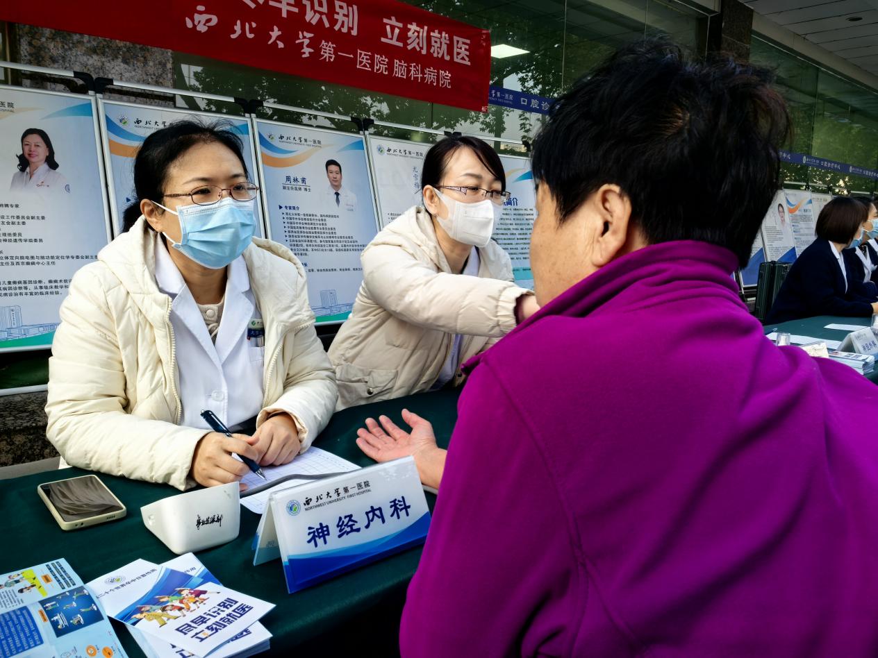 义诊现场,一支覆盖脑卒中诊疗全流程的义诊专家团成为最大亮点——西北大学第一医院脑科病院整合神经内科、神经外科、康复医学科、心身科核心力量,同时携手急诊医学科、超声医学科、医学影像科等关键科室专家共同坐诊。不同于常规义诊,专家们通过“深度科普+精准指导”,从市民最易察觉的口角歪斜、肢体无力等典型症状入手,结合真实病例,生动讲解脑卒中的早期识别要点,让原本晦涩的医学知识变得通俗易懂;针对高血压、高血脂、糖尿病等脑卒中高危因素,细致拆解筛查方法,根据问诊群众的年龄、基础病状况量身定制控制方案。