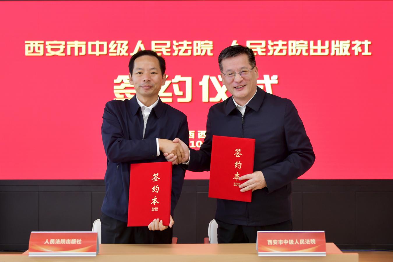 分享会前,人民法院出版社余茂玉社长一行调研西安中院诉讼服务中心、执行指挥中心、融媒体中心,以及西安法院法官干警交流平台,并与西安中院举行《共商共建共享优质法治文化资源合作协议》签约仪式。