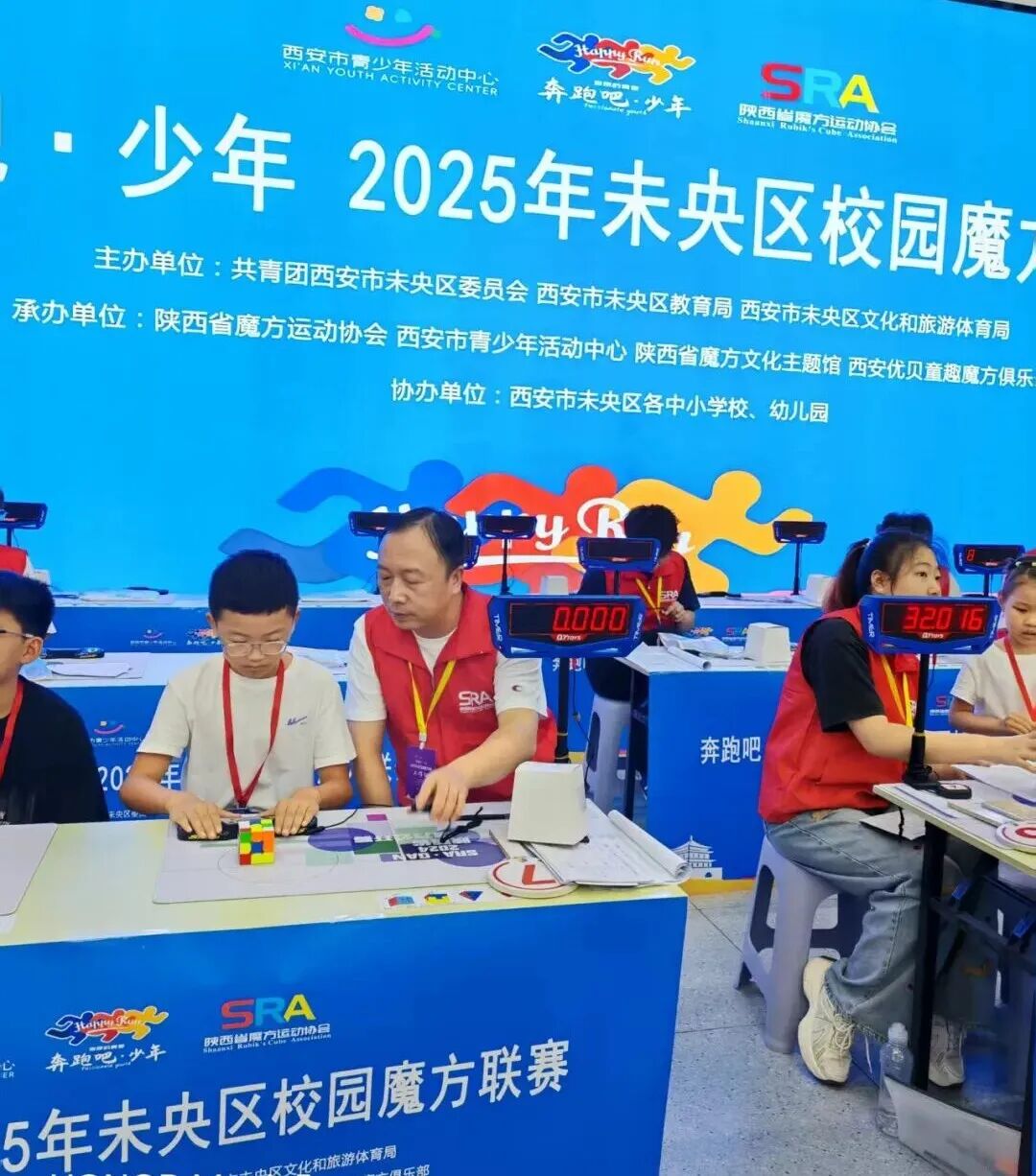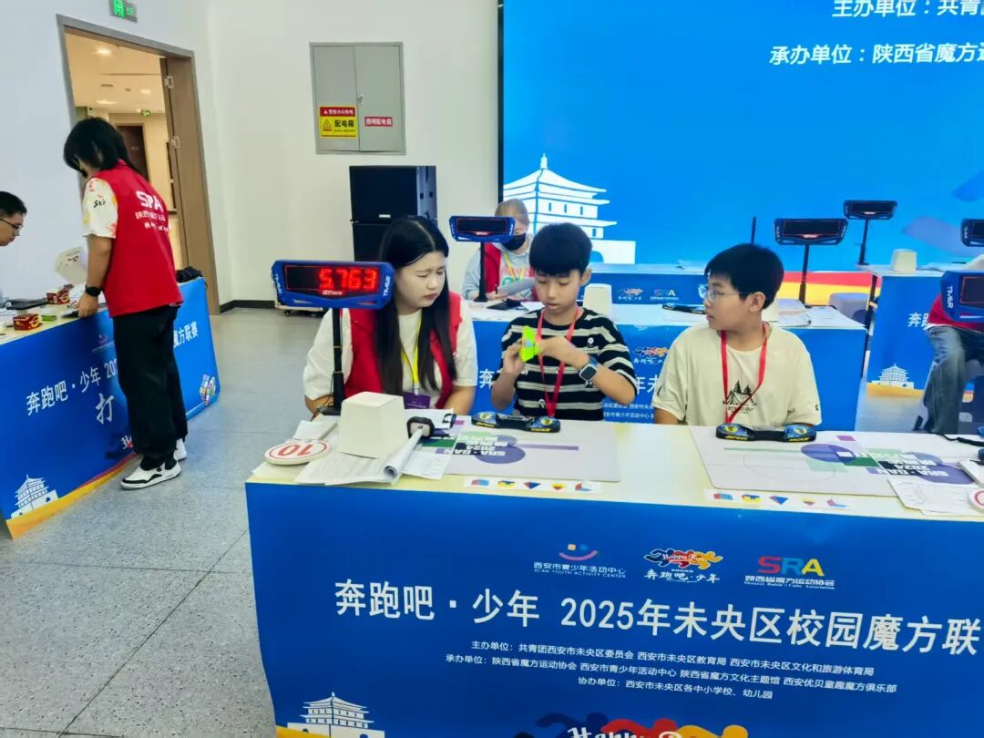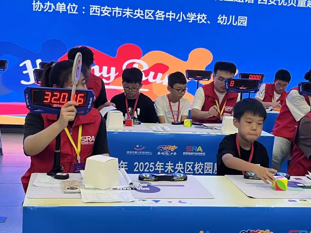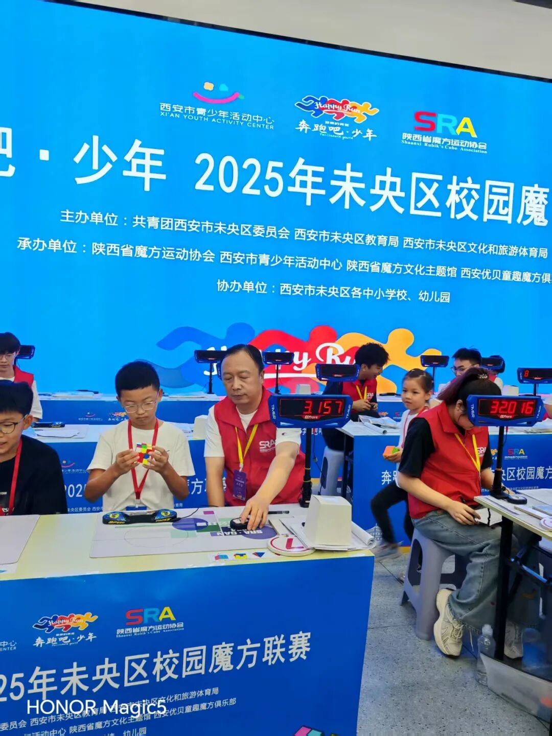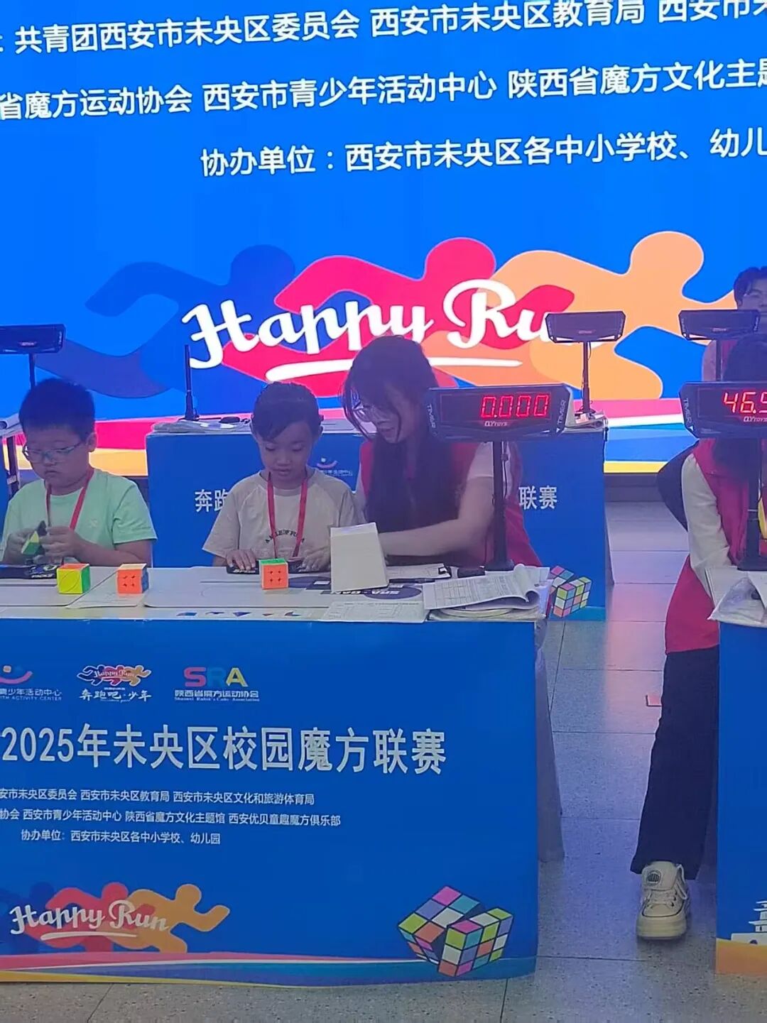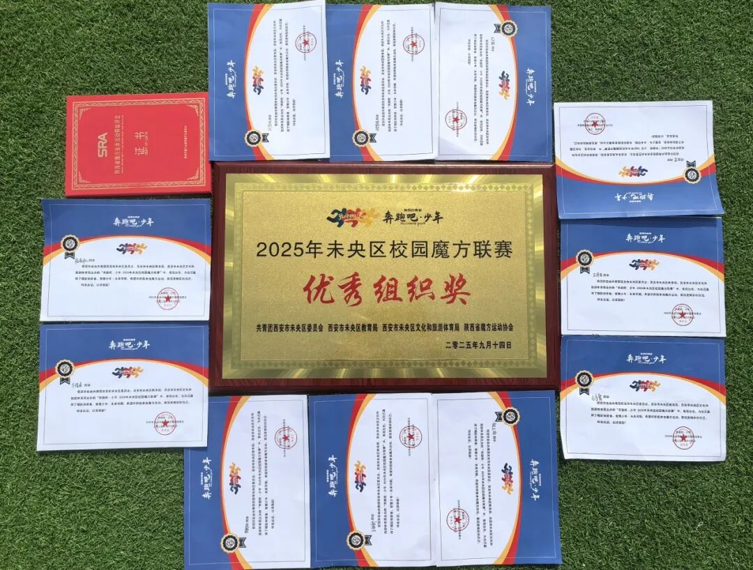 魔方运动作为一项独特的智力与体力相结合的项目,对于培养青少年的专注力、思维能力和手眼协调能力有着不可替代的作用,2025年9月13—14日,由共青团西安市未央区委、西安市未央区教育局、未央区文化和旅游体育局联合主办的“奔跑吧·少年”2025年未央区首届校园魔方联赛顺利落幕。该校学子以火热的激情,投身于此次联赛,展现了出色的空间思维与竞技素养。学校荣获“优秀组织奖”,多位选手摘得单项荣誉,六年级3班祖云滔同学获得陕西省魔方运动员等级证书。