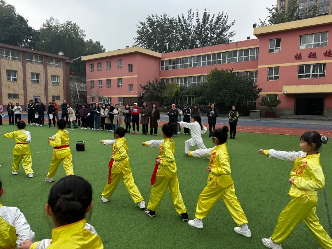 雍晶老师执教的《武术健身操》一课,课堂中融入AI教学,极大的提升学生学习的兴趣。她将语文学科中《弟子规》一课融入武术课堂,以趣味口令和形象比喻拆解动作,让三年级学生轻松掌握要领,镜面示范与手把手纠错尽显耐心。课堂将武术礼仪贯穿始终,从抱拳问好到课后致谢,潜移默化传递传统文化。小组PK环节点燃热情,利用灞桥区东城一小灵动课堂的模式进行展示和汇报,学生可以在运动中提升体能与协调性。这堂兼顾实效与素养,为后续体育教学提供了新的思路。