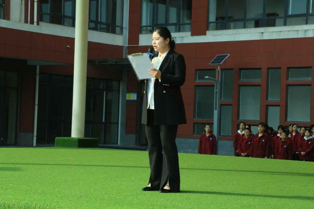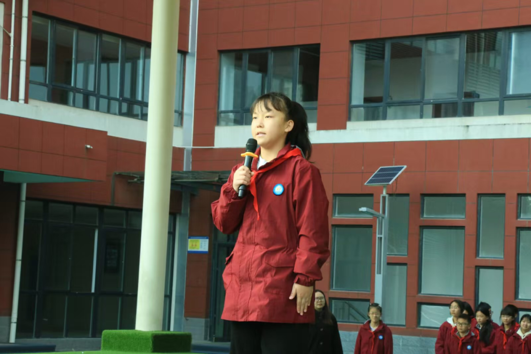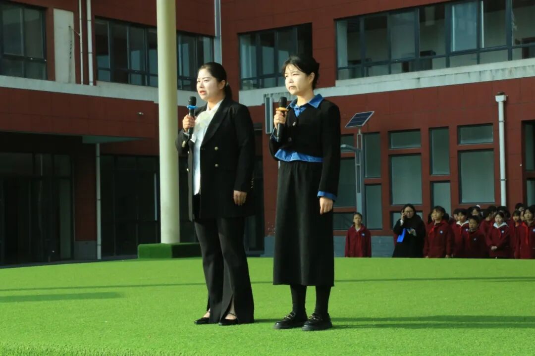 随后,黄星月、韩红梅老师进行国旗下演讲,她们向全体师生介绍了重阳节,回忆了登高望远、插茱萸、赏菊花、喝菊花酒、吃重阳糕等传统习俗,强调“敬老节”的重要意义,呼吁同学们在重阳节用道感谢、做力所能及的小事等实际行动传承敬老爱老美德,最后还送上了对长辈们的健康祝福与对同学们的成长期许。