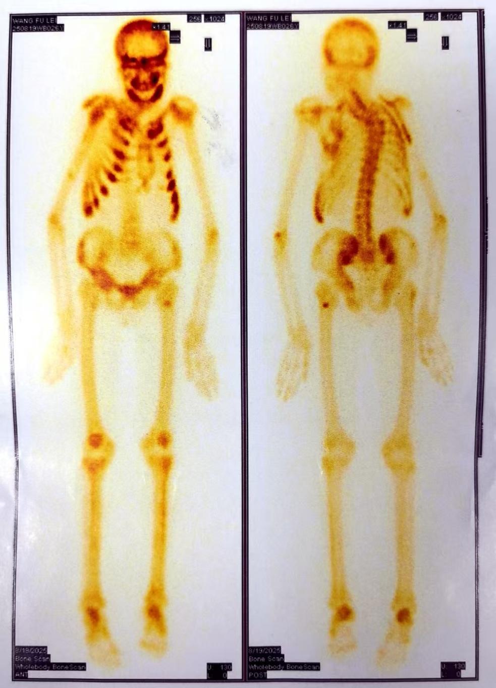 “患者就诊时已出现轻微骨痛,按压肋骨有明显压痛,这是‘玻璃人’的早期信号,”凌主任指出,“若再延误半年到一年,可能发展为严重骨质疏松,甚至出现自发性骨折,如弯腰捡物时腰椎断裂,并伴随肾功能损伤,治疗难度会翻倍。”