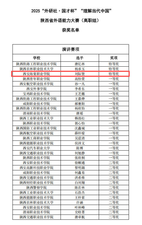 “这次获奖不仅是个人的突破,更印证了学校‘岗课赛证’综合育人模式的成效。”获奖选手在赛后表示,备赛过程中对大赛主题“理解中国、沟通世界”的深度探索,让自己真切体会到“英语是职业发展的核心工具”,未来将以更饱满的状态备战国赛。英语教研室主任也强调:“赛事是教学成果的试金石,我们始终以赛促教、以赛促学,通过搭建高水平竞技平台,助力西安海棠职业学院学子成长为符合时代需求的国际化技术技能人才。”