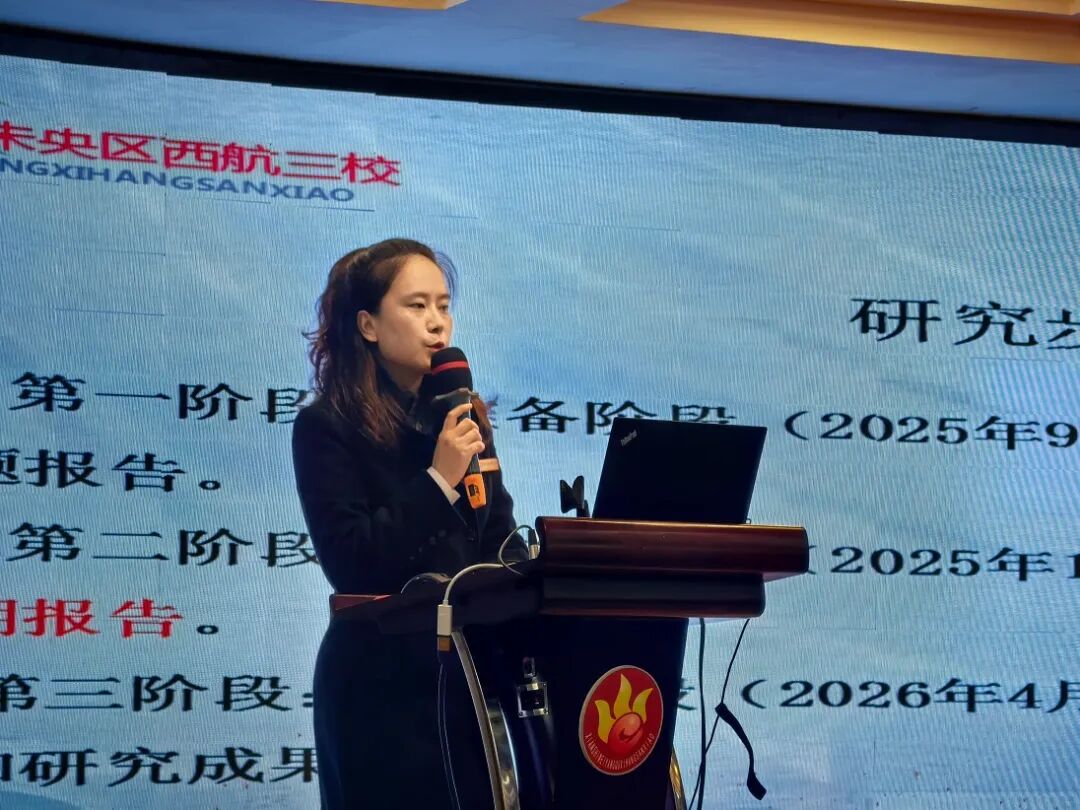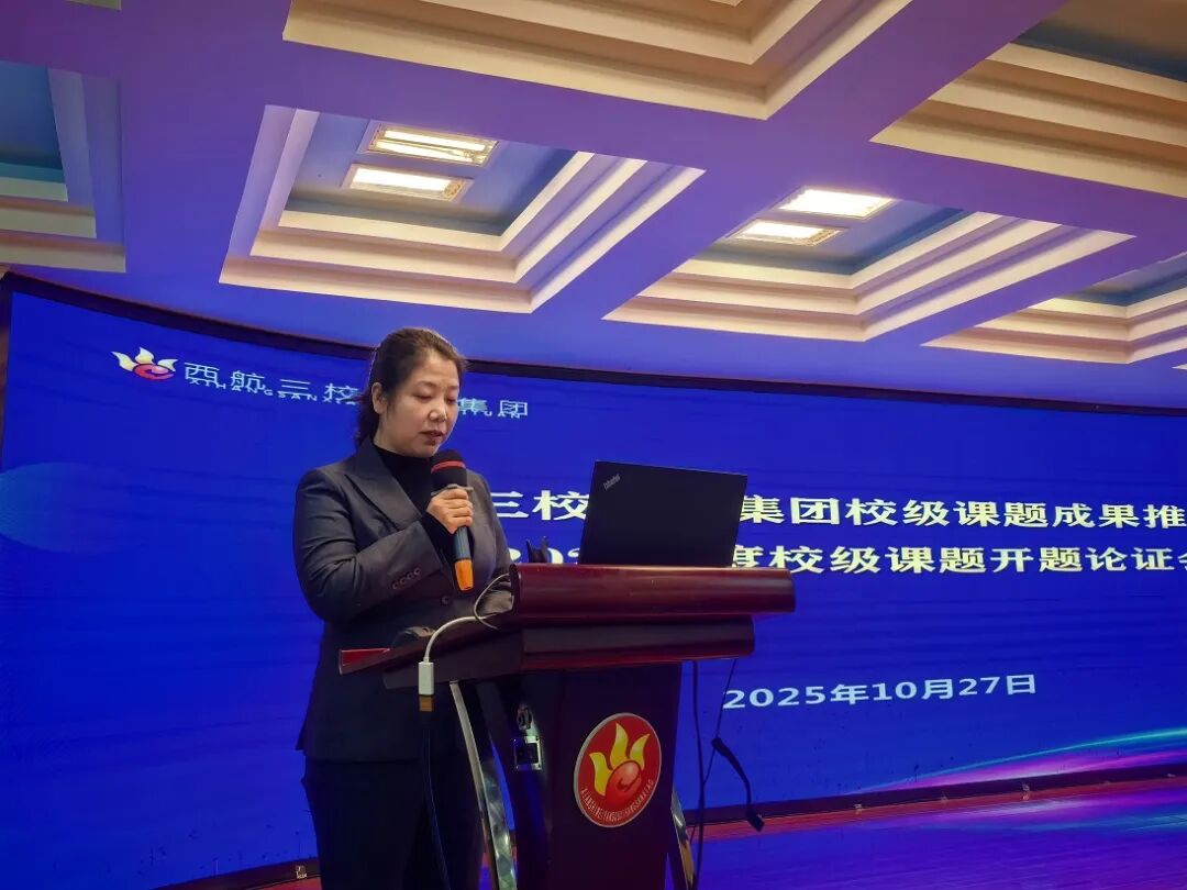 2025年10月27日下午,西安市未央区西航三校教育集团校级课题成果推广会暨2025-2026学年度校级课题开题论证会,在西校区二楼多功能厅如期举行。教育集团总校长杨辉、教学副校长郑建茹,西校区执行校长侯超、教学副校长张凡,以及东校区、西校区、开元小学的课题主持人与教学部领导共同参会,会议由西校区教研部长刘晓君主持。