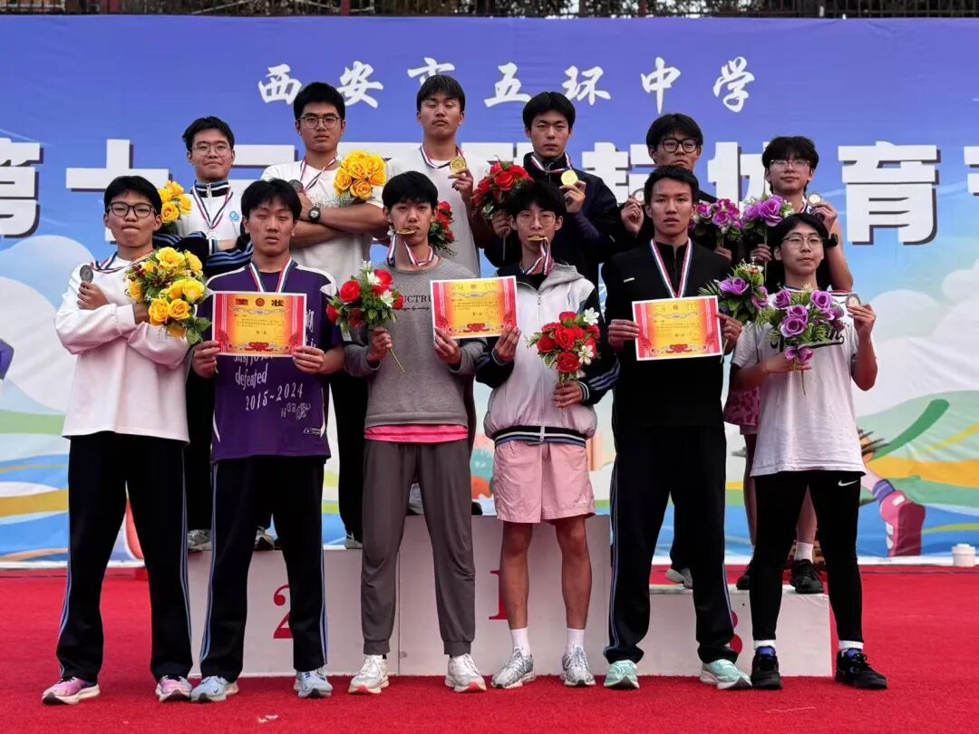 在绵绵秋雨的间隙,西安市五环中学第十三届“励耘”体育节的赛事紧张进行。蓝色跑道上,一个个身影在飞奔;田赛场地上,一道道弧线将高度不断刷新,将距离不断推进;观众席上,加油呐喊壮军威;广播里,捷报声声催人奋进;领奖台上,手捧奖状的笑脸最迷人……