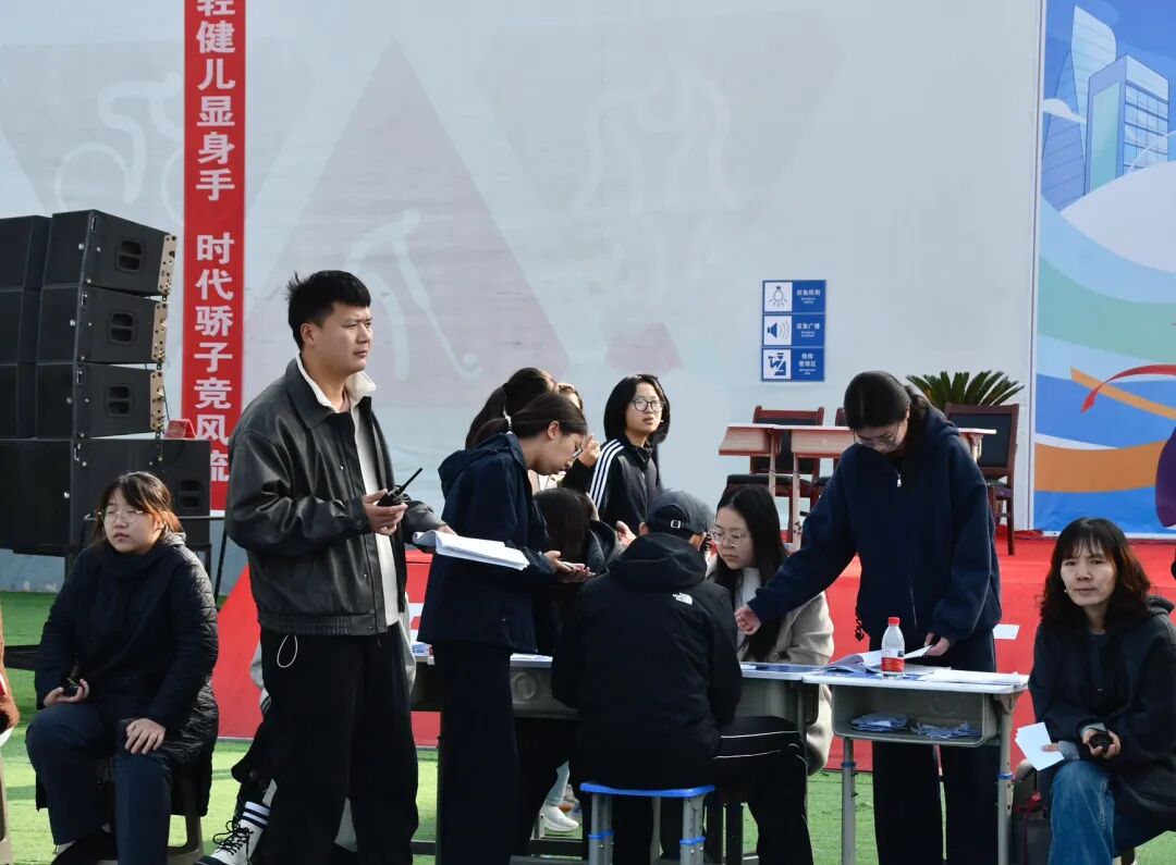 热火朝天的比赛场上,还有一群默默无闻的裁判员和志愿者,他们严谨公正、严格执法、有序组织比赛,确保各项成绩的准确性;广播员们热情播报,传递着每一份胜利的喜悦。正是他们的付出,让运动会更加圆满。