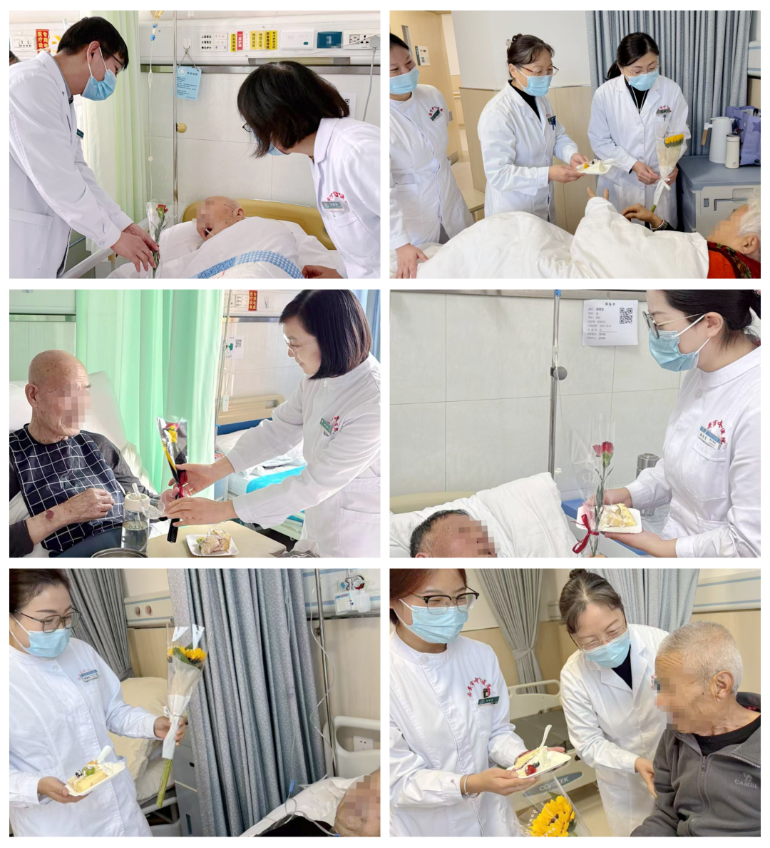 精美的蛋糕、芬芳的鲜花,送到科室每一位老人手中,让温暖与关怀在病房中静静流淌。