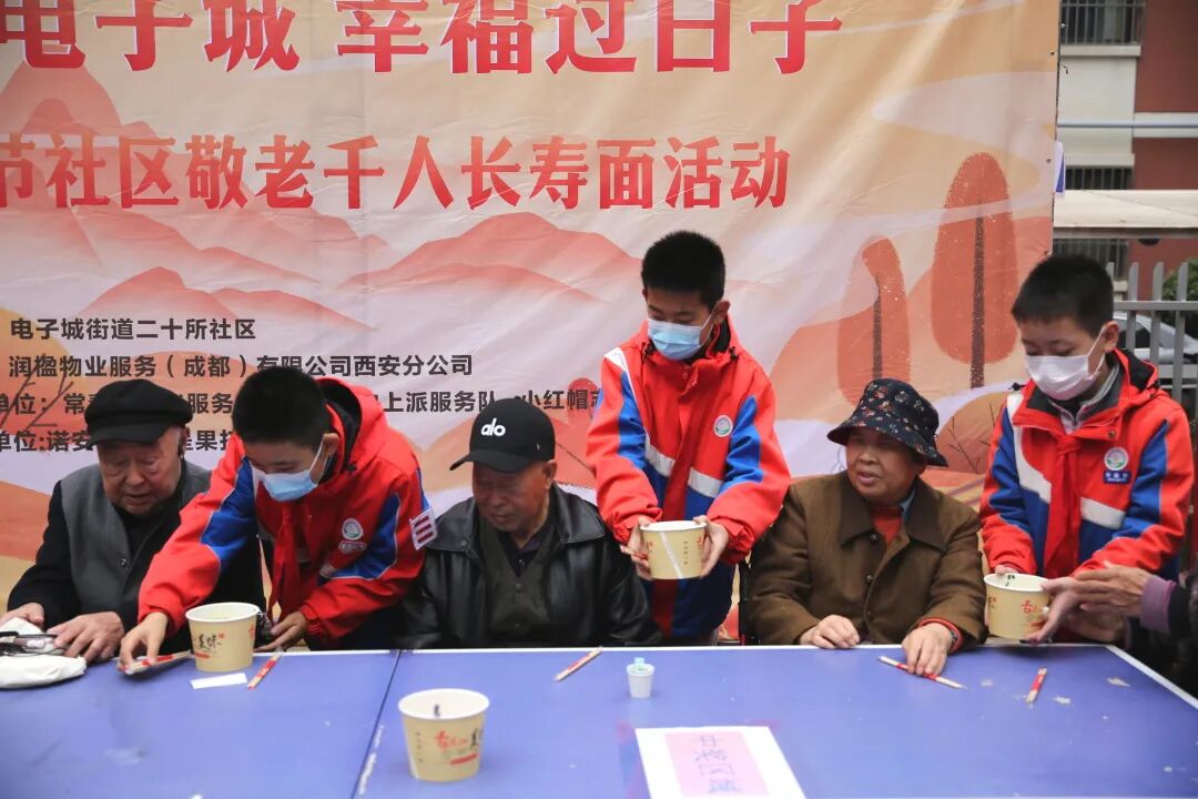 活动中,高新路小学的小小爱心传递者们,热情地协助工作人员分发热气腾腾的长寿面,将一碗碗满载祝福的寿面双手捧给在场的爷爷奶奶;他们担任贴心小助手,耐心搀扶行动不便的老人,引导他们就座,细心询问需求;更有同学成为“欢乐传递员”,陪老人们聊天说笑,用纯真的笑容感染着每一位长者。