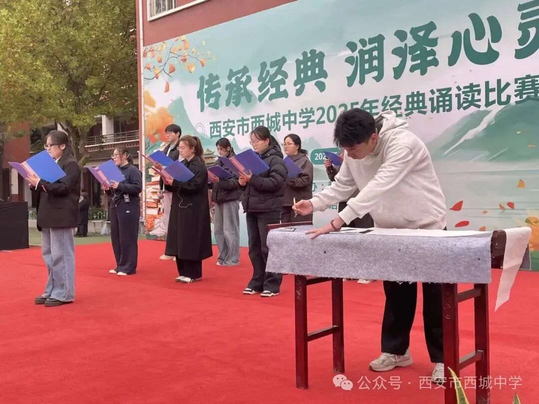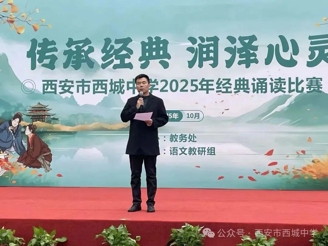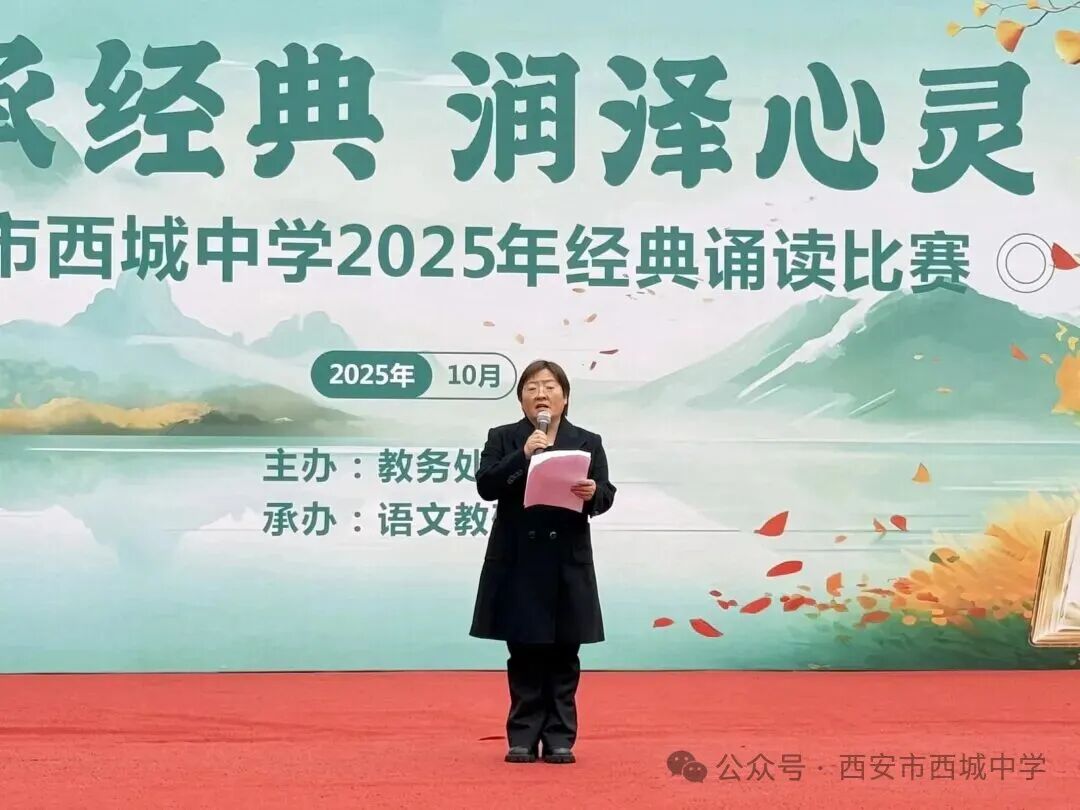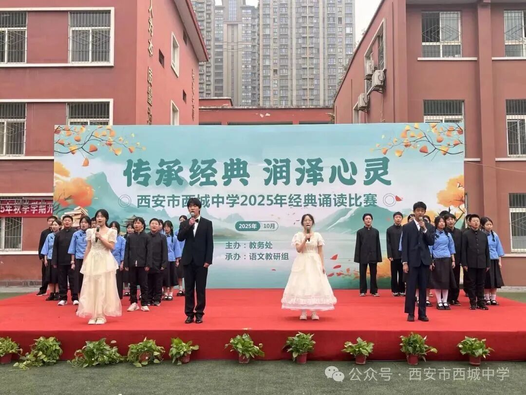 丹桂飘香,秋日暖阳,菊色斑斓,画染秋心。2025年10月29日下午,西安市西城中学在操场举办了一场精彩的“传承经典·润泽心灵”经典诵读比赛。全体师生济济一堂,迎着金秋的暖阳,在心中共筑家国情怀,追慕美好未来。