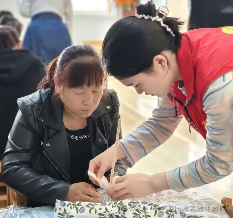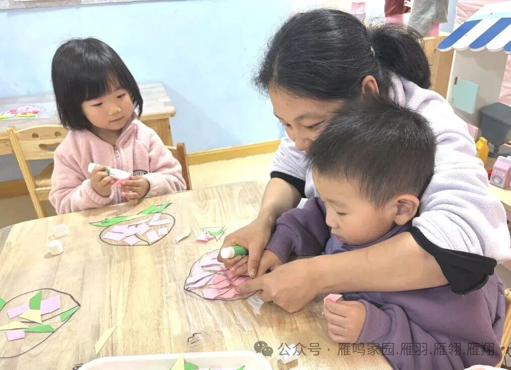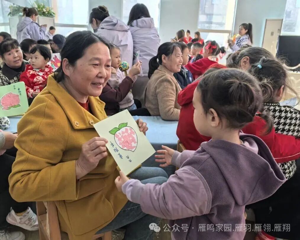 孩子们亲手制作重阳礼物,表达对爷爷奶奶的感恩之情:雁翔组绘制“爱心贺卡”,传递浓浓的祝福;雁翎组巧手制作“泥工茱萸”,祈愿祖辈安康长寿;雁羽组粘贴“寿桃画”,传递稚拙真挚的爱意。