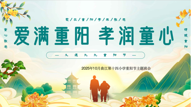 “百善孝为先,孝敬是根本。”本次重阳节系列活动,不仅营造了浓厚的节日氛围,更让队员们懂得了感恩与回报。大家相信,这份由活动点燃的敬老爱老之心,绝不会随着节日的过去而消散,它将在曲江第十四小学的校园里延续,在每一个家庭中传承,让中华民族的传统美德在新时代焕发出更加璀璨的光芒!(胡维霞)