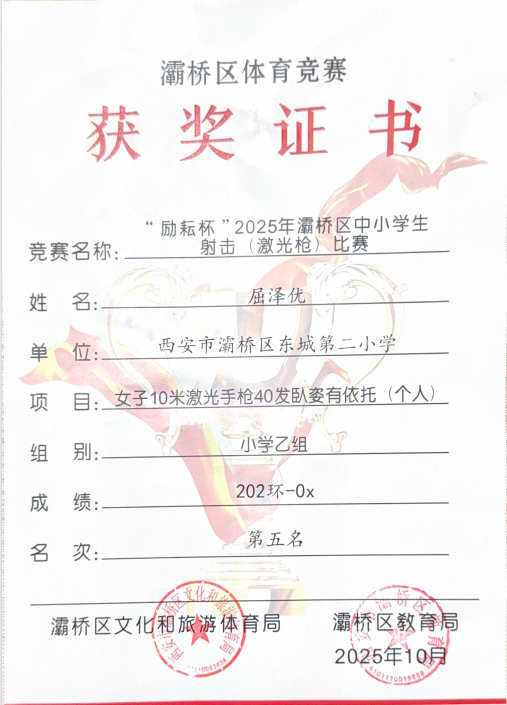 此次比赛不仅是灞桥区中小学生射击水平的集中展示,更在专业指导下搭建了“体教融合”的实践平台。通过这样的平台,射击运动的种子在校园里生根发芽,为这项注重精准与心理的传统运动,注入了勃勃生机与澎湃的青春力量。未来,大家期待更多二小学子,在更广阔的赛场上,为校争光,成就梦想!(董洁 方玺华)