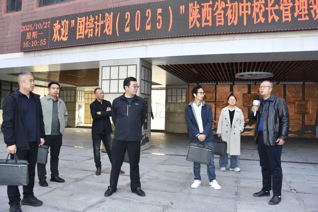 春华秋实,硕果盈枝。2025年10月27日,“国培计划2025”陕西省初中校长执行能力提升培训班50名学员,来到西安市五环中学开展参观交流活动。此活动旨在分享教育管理经验,共探教育改革路径,特别是围绕课堂教学创新、校园文化建设及心理健康教育等重要议题展开深度对话与智慧碰撞。