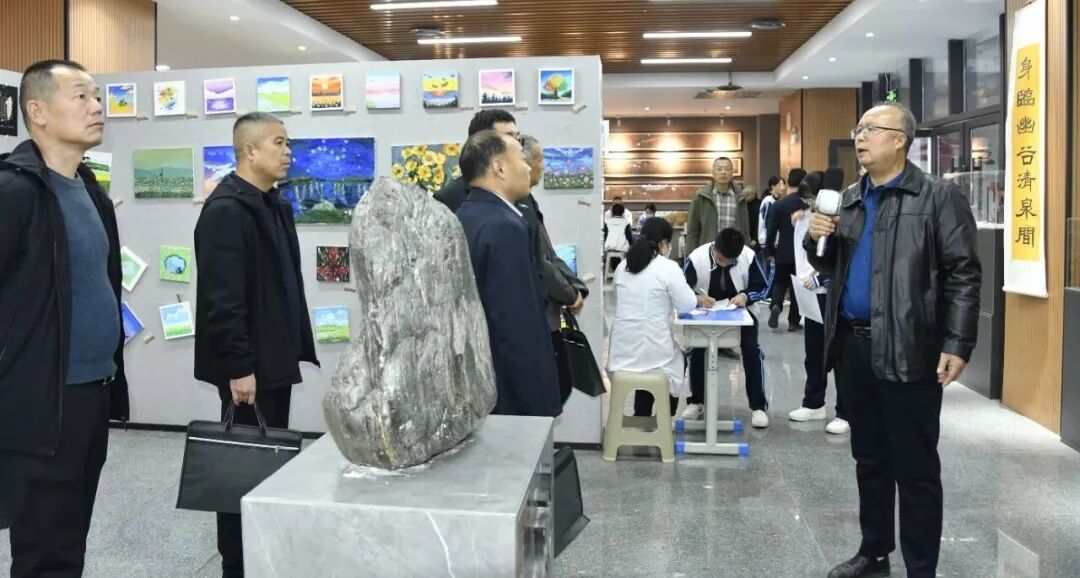 报告会后,在校领导的陪同下,学员们实地参观了西安市五环中学“一轴五厅五园”布局的特色校园环境文化。从承载历史文脉的校史厅,到彰显科技特色的德育厅;从充满豪情壮志的励志园,到展示学生艺术才华的美术厅;从洋溢着“励耘”文化精神的中心轴线,到活力迸发的运动场馆、射击馆……一步一景,皆教育。宣传中心主任李栓民详细介绍了校园景观设计中所蕴含的教育理念与育人目标,强调通过“润物细无声”的环境熏陶,实现文化传承、品格塑造与审美提升。学员们对西安市五环中学将育人功能巧妙融入校园物理空间,营造出浓厚人文与科学氛围的做法给予了高度评价,纷纷表示校园文化是学校发展的灵魂所在,西安市五环中学的经验为他们提供了宝贵的借鉴。