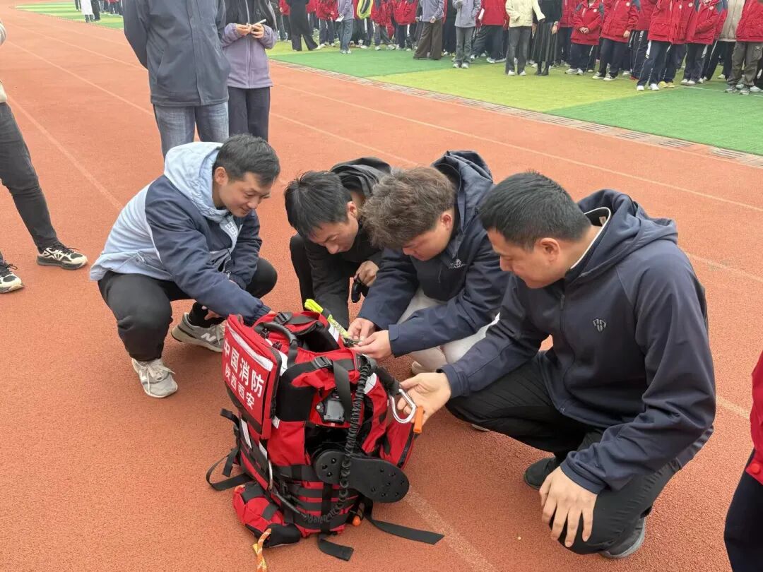 疏散环节结束后,鸿明路消防救援站的消防员现场开展火灾应急知识培训,内容涵盖浓烟环境下的正确呼吸方式(如低姿浅呼吸)、初期火情的科学处置方法(如断电断气、初期灭火技巧),以及灭火器、消防栓等常用消防器材的实操使用技巧,通过 “理论讲解 + 现场示范” 让师生直观掌握应急技能。此次演练由执行校长孙锋担任总指挥的应急疏散演练指挥部全程统筹调度,现场指挥组、疏散引导组、人数统计组、后勤保障组等各工作组分工明确、协同配合,确保演练高效有序。