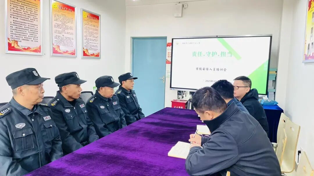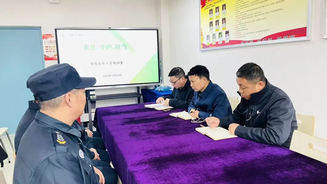 为进一步加强校园安全,2025年10月22日上午,西安市浐灞第十七小学在会议室举行了以“责任,守护,担当”为主题的保安人员专项培训。学校分管领导、后勤主任及全体保安人员参加。