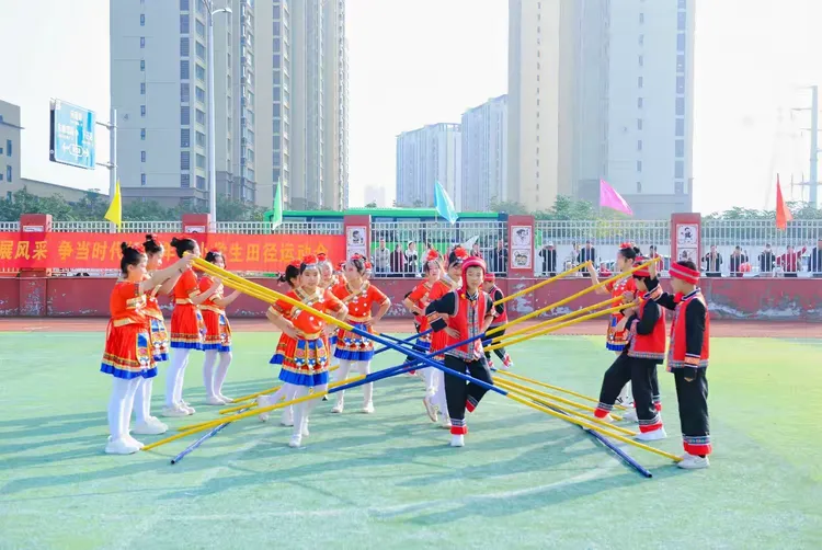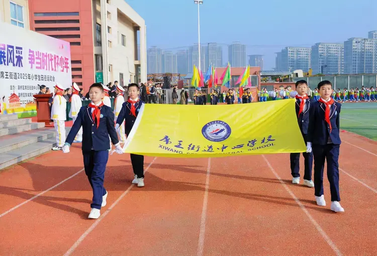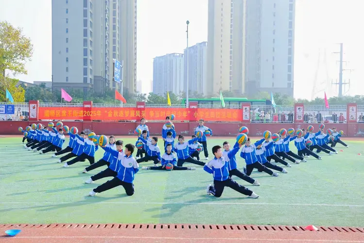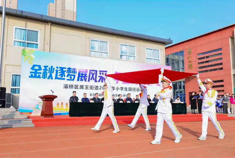 开幕式流程紧凑、亮点纷呈:灞桥区席王街道教育办主任致开幕词,寄语运动员在拼搏中砺志、在运动中逐梦;灞桥区教育局党委副书记庄重宣布运动会开幕。特色展演随即燃动赛场:老洞小学啦啦操活力四射,东城六小腰鼓表演鼓点铿锵,席王中心园节目童趣满溢,官厅小学篮球操尽显激情,东李小学竹竿舞传承民俗,席王中心小学鼓号队奏响昂扬旋律。系列展演既展示了校园文化魅力,更彰显辖区学校深耕素质教育、优化课间活动、推进“五育并举”的扎实成果。
