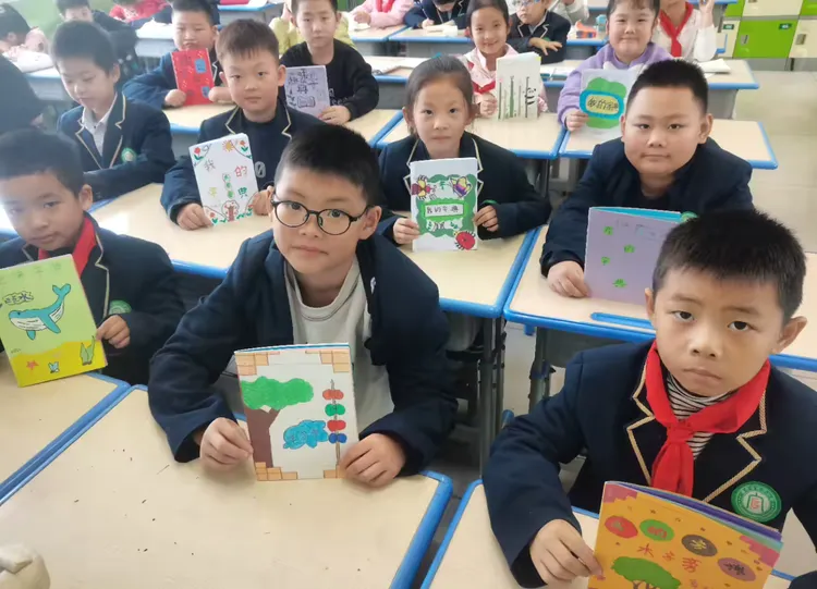 孩子们精心准备,每一本小字典都有了新内容新版本,每一处细节都充满了他们对知识的无限热爱!拿着自己的“劳动成果”,从设计思路、所选汉字到制作过程,自信满满地向小伙伴们一一分享。