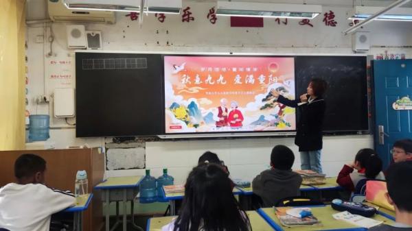 各班级以“浓情重阳,孝在心中”为主题开展班会。班会中,班主任老师通过多形式开展班会。如带领学生了解重阳节的历史演变与各地习俗、组织“我的长辈”分享会,让学生讲述长辈关心自己的暖心瞬间等,引导学生将感恩之心转化为具体行动。