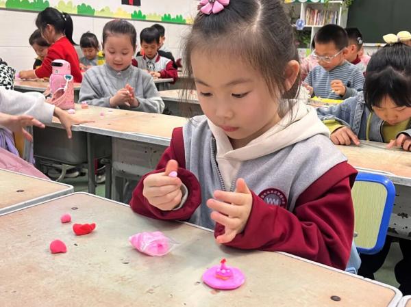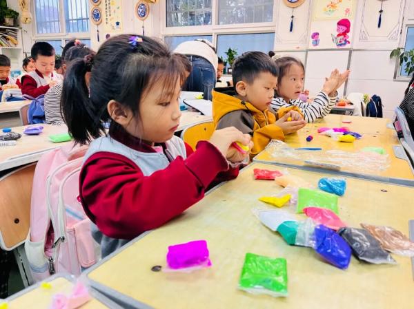 学生们在老师的指导下,制作重阳节小手工,送给长辈表达祝福,体验节日文化。一件件小巧而又精致的作品,传递了孩子们对长辈满满的爱意。