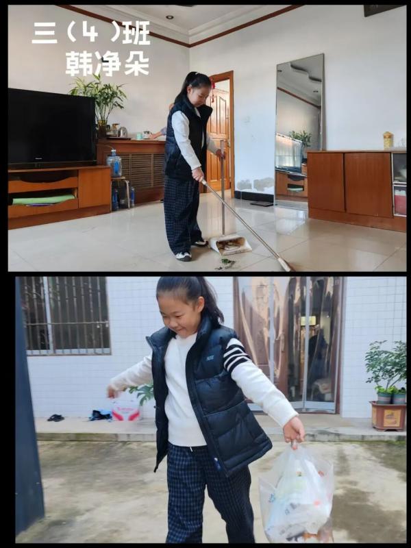 三四年级的同学们做力所能及的事,为长辈捶捶腿、洗洗脚、梳梳头,或帮忙扫地、整理家务,用实际行动,把孝心揉进细碎日常里。长辈眼角的笑意,是对这份温暖最动人的回应。