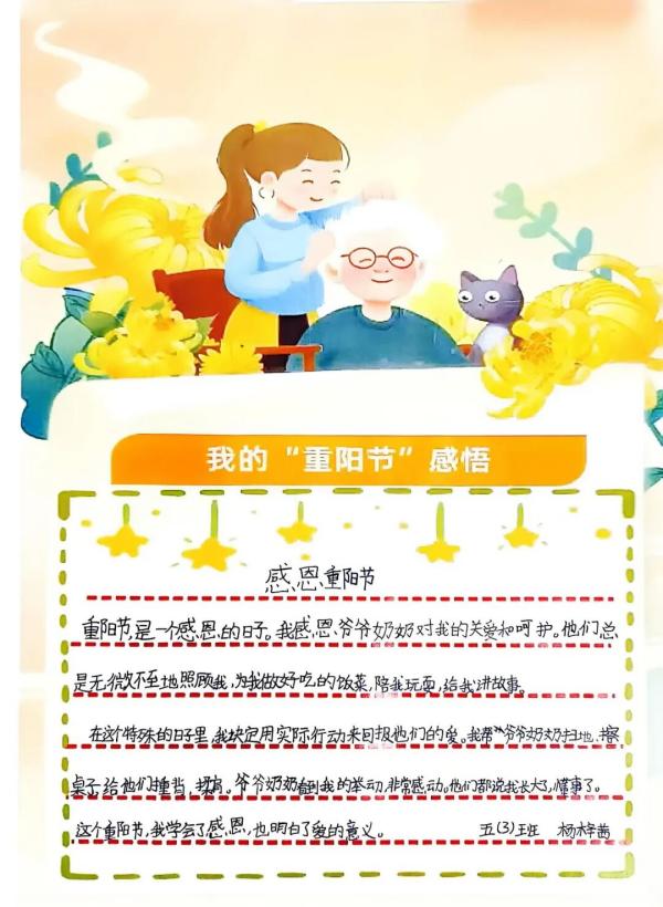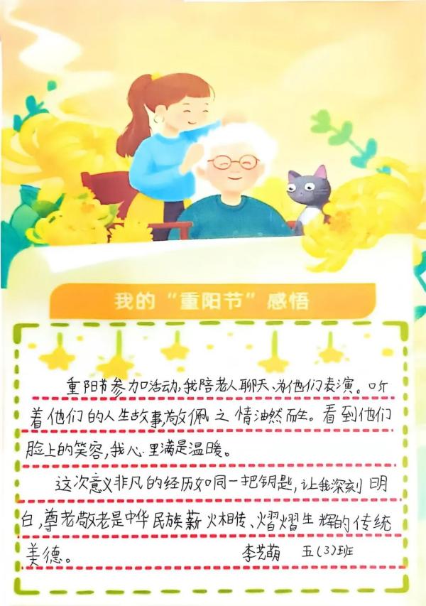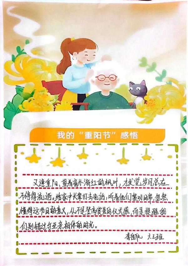 从手工制作到躬身尽孝,一系列重阳节活动落幕,同学们带着满满收获,认真写下了真挚的实践感悟。