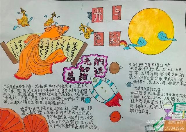 通过此次制作科普小报,同学们在观察生活现象、动手实践的过程中,不仅解答了“为什么能看见光”、“彩虹怎么形成”的疑问,更能学会用科学的眼光看待世界——其实科学并不遥远,它就藏在每一次对光影的好奇里,每一次动手探索的尝试中。(陶莉)