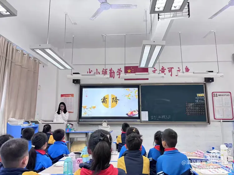 班队会上,老师用生动的图文和有趣的动画,带学生们一起走进了“霜降小课堂”。