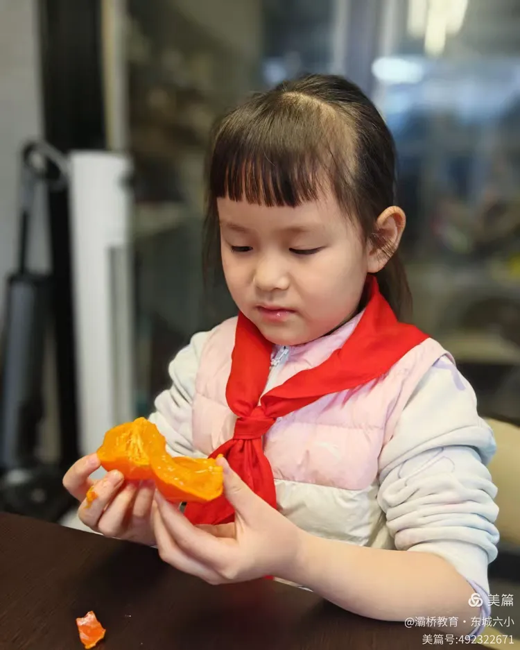 “霜降吃丁柿,不会流鼻涕”,学生们品尝新鲜的柿子、嚼着带霜的柿饼,从口入心的感受到节气的“甜蜜”。