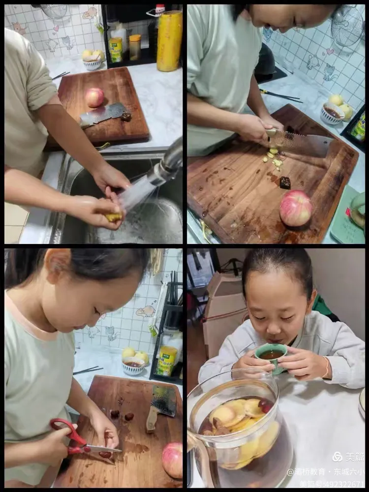制作姜枣茶,在家长的协助下,学生们学习制作简单的暖身饮品,体验“秋冬进补”的习俗。