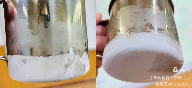 科学课上,在老师的引导下,学生们进行简单的科学小实验,模拟霜的形成,将传统认知与现代科学联系起来。