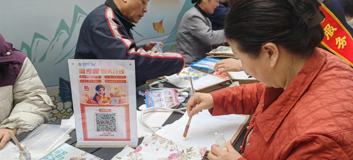 帆布袋绘画与贴图DIY项目则成功将现场气氛推向高潮。活动现场备好各色图案贴纸与空白帆布袋,老人们挑选喜爱的图案,亲手设计制作个性帆布袋。在创作过程中,大家互相交流心得、分享生活趣事,欢声笑语不断。这一环节不仅激发了老人的创造力,更成为连接邻里情感的桥梁,让营业厅化身为充满温情的社交空间。
