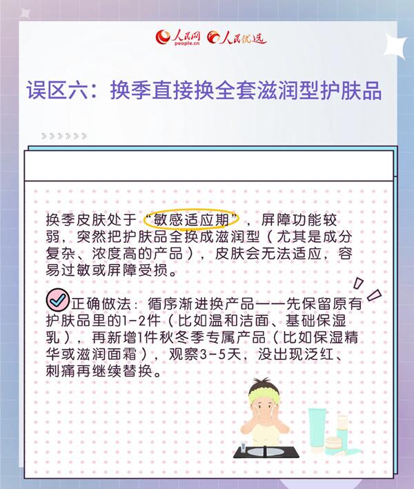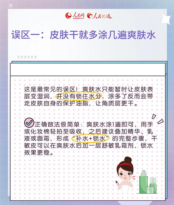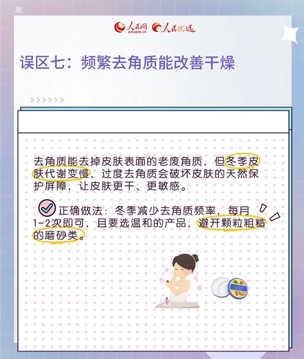 冬季皮肤干燥、紧绷甚至脱屑皲裂,其实是气温下降、空气湿度变低导致皮肤水分快速蒸发的正常现象。很多人急于补水保湿,却因方法不当效果不佳。本期《人民优选来了》,为你梳理下面8个秋冬护肤常见误区,快看看你有没有中招!