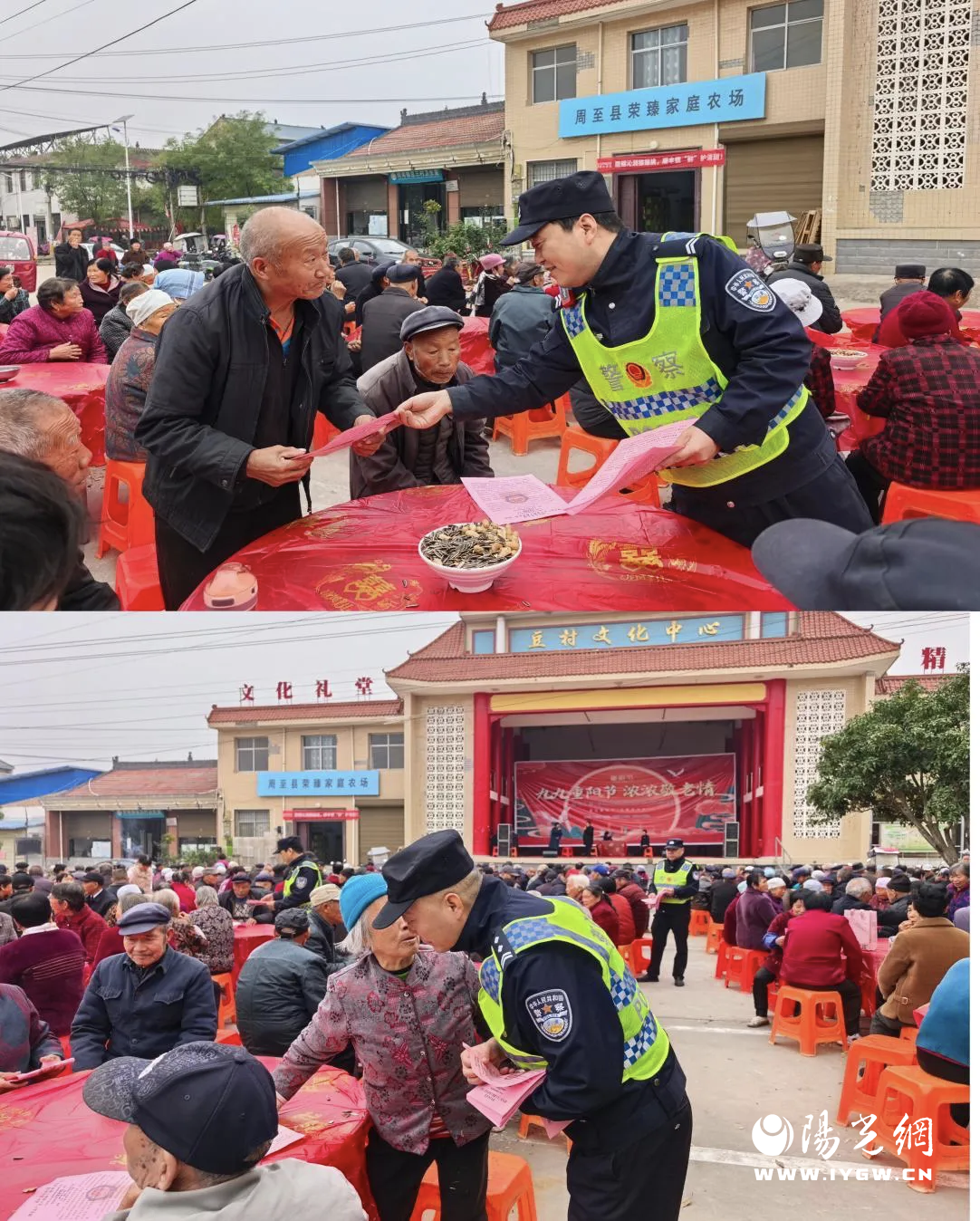 阳光讯(记者 刘林枫 通讯员 丁鹏)九九重阳,久久守护。为进一步弘扬中华民族尊老、敬老、爱老、助老的传统美德,提高居民群众的幸福感和归属感。10月29日重阳节当天,周至县公安局终南派出所民辅警深入辖区各个村部及社区开展以“迎重阳、话反诈、送平安”为主题的宣传活动,精准服务老年群体。