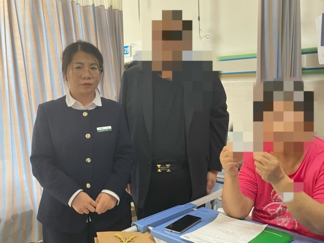 抵达病房后,工作人员未急于办业务,先轻声询问M女士的恢复情况,耐心安抚情绪,待她状态平稳才开始工作。工作人员从提前备好的文件袋中取出资料,逐页细致核验信息的完整性与真实性。当发现“XX药品”的记录存在模糊处时,她俯身靠近,轻声引导确认:“您看这里,这是您术后的常规用药吧?”。整个过程中,她用每一个严谨的细节,切实守护着客户的切身权益。填写资料时,也工作人员递上中性笔全程细心协助,还主动接过M女士手中的笔和资料,减少客户她的起身动作。短短20分钟业务就已经全部办结,离开前工作人员留下联系方式,叮嘱后续需求可随时沟通。整个过程中,她用每一个严谨的细节,切实守护着客户的切身权益。