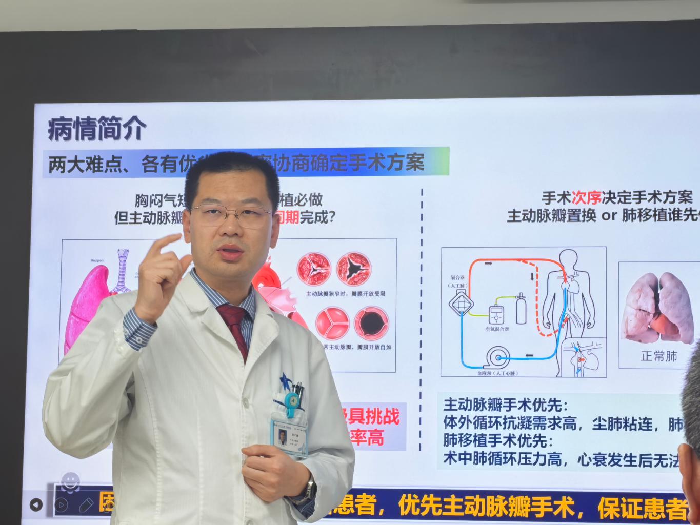 团队通过循证医学分析与模拟推演明确:若仅行主动脉瓣置换,患者因尘肺导致的严重肺功能障碍,术后无法脱离呼吸机;若仅行肺移植,心脏瓣膜病变会导致围术期急性心衰,死亡率超 90%。唯一可行的路径是同期手术,但该方案风险高。