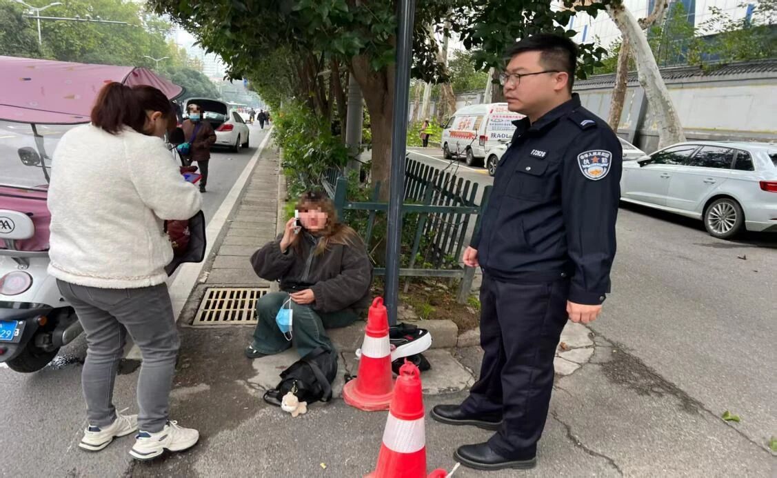 六天前上午,民警刘宇琛与辅警张超在外出工作返回途中,发现一处路口有群众聚集,原来是一起交通事故,一位骑摩托车的女士受伤倒地,无法起身。当时路上车辆往来频繁,情况十分危险。二人立即停车上前,分工展开救助。