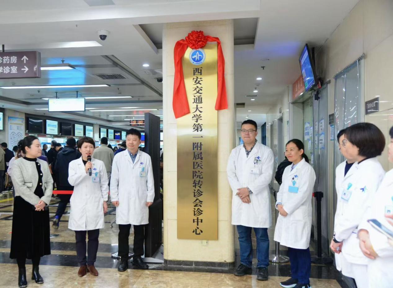 阳光讯(记者 郑亚雷)10月30日上午,西安交通大学第一附属医院(以下简称“交大一附院”)转诊会诊中心揭牌仪式在总院门诊大楼一楼大厅举行。院长助理兼医务部部长王铮、全科医学科主任张玮、医务部门诊部主任刘庆、事业发展与校友工作部部长李杨、医务部医政管理办公室副主任胡婷婷、医务部门诊部副主任吴楠等院级管理团队及科室负责人共同为中心揭牌,标志着医院在落实分级诊疗政策、优化医疗资源配置方面迈出关键一步。上午九点,由医务部门诊部主任刘庆主持,宣布仪式正式开始。