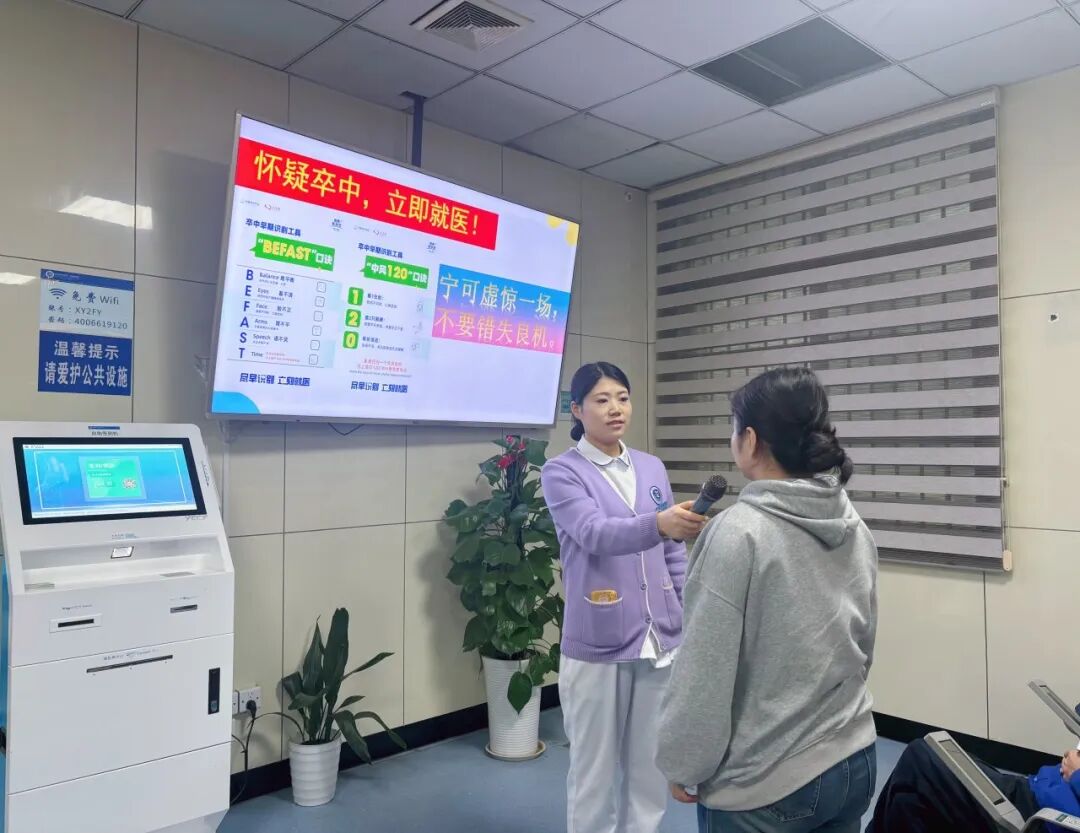 为进一步普及“世界卒中日”核心知识,该院在内科专家门诊候诊区开设健康讲座,由神经内二科副主任医师高章代主讲《脑卒中的识别与预防》。讲座中,高章代副主任医师结合临床案例,清晰讲解脑卒中的早期识别方法、高危因素及预防措施,倡导群众牢记“早发现、早干预”原则。同时针对老年群体特点,重点强调“控制基础疾病(如高血压、糖尿病)、调整健康生活方式(如合理饮食、规律作息)、高危人群定期管理”三大核心要点,帮助候诊区患者及家属在就诊间隙,高效掌握脑血管健康防护知识,在秋日寒意中筑牢健康防线。