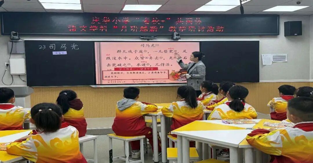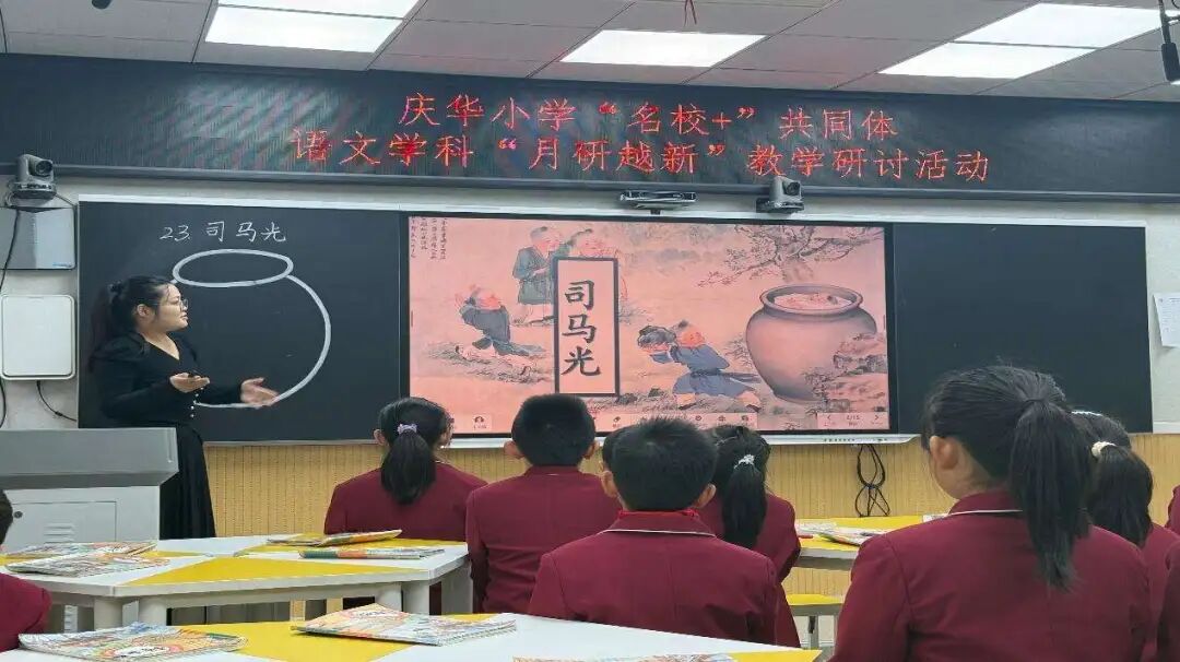 庆华小学李毅老师执教三年级《司马光》。一场“美好品质·故事传讲人”活动精彩展开。李老师以情境导入激发兴趣,借《司马光》文言文教学,通过“读准字音、读出节奏、读懂意思、熟读成诵”四大锦囊,结合注释、插图、组词等方法,带学生破译文言密码。同时,对比人物表现,让学生感受司马光沉着机智的品质,实现文言学习与品格教育的巧妙融合,为学生语文学习与品格养成注入双份动力。