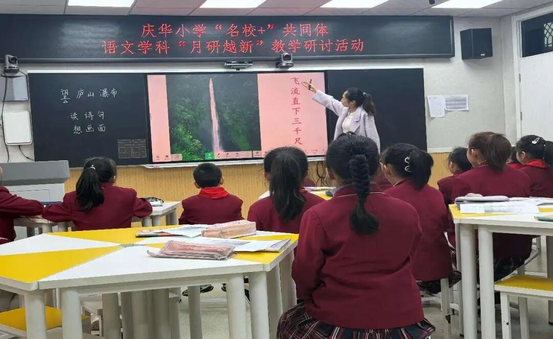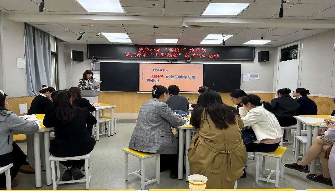 秋日暖阳映校园,教研馨香满庭芳。为助力“名校+”共同体语文青年教师专业素养提升,推动新课标理念与AI技术深度融合,打造高质量语文创新课堂,10月29日,西安市灞桥区庆华小学“名校+”共同体在庆华小学校本部隆重开展语文学科“名师+”教学研讨活动。活动特别邀请灞桥区教师进修学校语文学科教研员秦维老师莅临指导。来自庆华小学成员校语文学科“名师+”的数十名语文教师齐聚一堂,共探创新课堂路径,共话AI赋能教学。