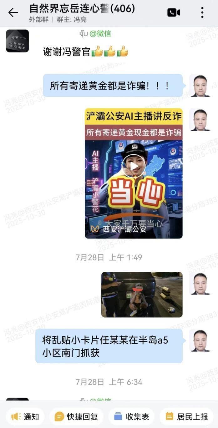 线上,全局已建立3651个“连心警务群”,覆盖居民26.9万余人,成为社情信息“汇聚点”、安全防范“宣传站”和服务群众“暖心桥”。今年线上接收的1793条群众意见已全部闭环处置,将风险隐患消除在萌芽。线下,通过“进建商”活动与“线下+线上”结合的公安文化宣传,密切了警民联系,聚起了民心。