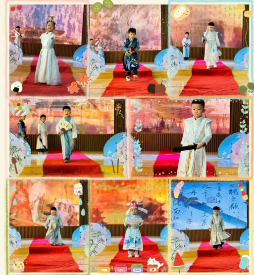 下午的 “衣冠承华夏 萌娃秀雅韵” 环节将活动推向高潮。活动前,教师与家长志愿者共同准备了丰富的汉服配饰制作材料,如彩绳、卡纸、珠子等。活动中,首先由教师或家长志愿者开展汉服小讲堂,生动讲解汉服的基本结构与传统礼仪,让幼儿了解汉服背后的文化内涵。随后,亲子协作动手制作发簪、团扇、玉佩等配饰,家长与孩子相互配合,裁剪、粘贴、装饰,忙得不亦乐乎。最后,T 台雅韵风走秀正式登场,幼儿身着精致汉服,佩戴自制配饰,在古典音乐的伴奏下,与家长一同走上 T 台,迈着优雅的步伐展示汉服之美,并在过程中学习、展示揖礼等传统礼仪,举手投足间尽显中华传统文化的典雅与庄重,赢得现场阵阵掌声。