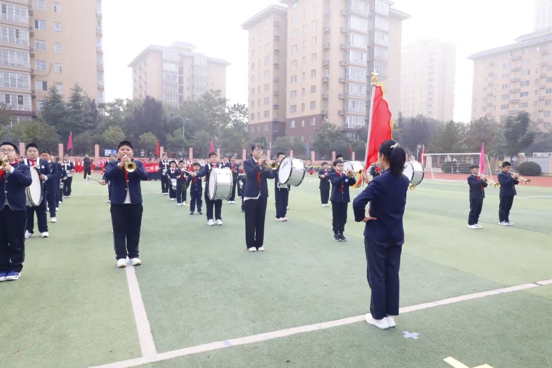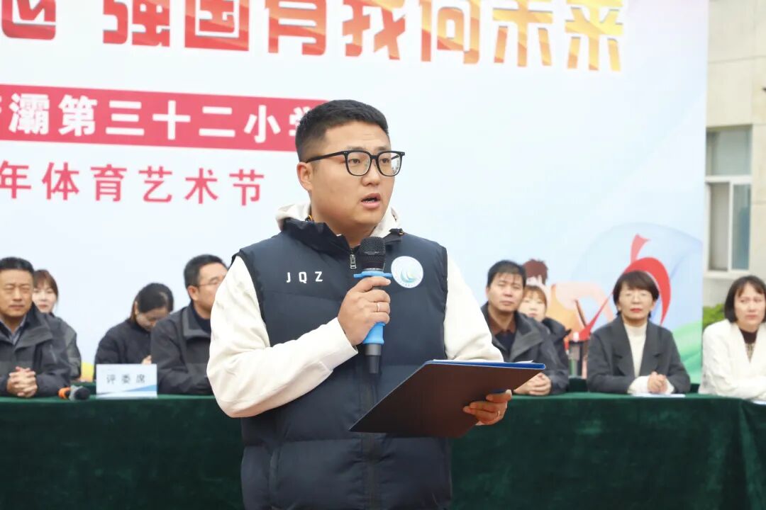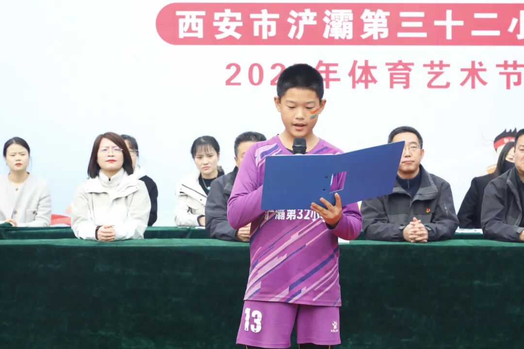 伴随着激昂的鼓号声,开幕式正式拉开帷幕。升国旗、奏唱国歌,全体师生肃立行礼,鲜红的国旗映衬着少年们坚定的眼眸;张杰校长在开幕辞中殷切嘱托,鼓励孩子们以艺为媒、以体赋能,在赛场上绽放青春风采;运动员代表铿锵宣誓“赛出水平、赛出风格”,裁判员代表庄重承诺“公平执裁、坚守初心”。